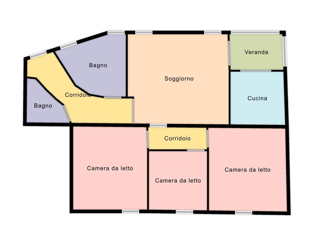 - ingresso, ampia sala, cucina abitabile con veranda, un ampio bagno con doccia e vasca ed un ulteriore bagno/lavanderia;